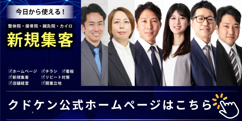 整体院・鍼灸・整骨院・接骨院、いわゆる「治療院」におけるWeb集客のプロ。クドケンSEOチームマネージャー、Web集患ディレクター。得意分野はGoogleを味方につけるアクセス集め。MEO(Googleマップ対策)でもクチコミ数8倍アップ、新患20名増など実績多数。趣味は野球。